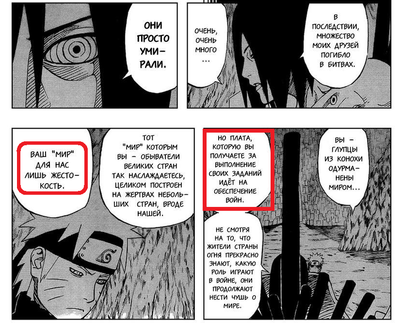 Да, Нагато был молод, а его слова были пропитаны максимализмом, но вы же знаете - и Джирайя, и Наруто, это именно ТЕ люди, кто и САМИ любят так выражаться, и в целом - в восторге от такой позиции. Так вот, Нагато был на их уровне в 10 лет и успешно перерос выдал интересную мысль, дескать не так важно ДОСТИГНУТЬ МИРА и возможно это или нет, а важнее, что У НАС ЕСТЬ СИЛА его достичь.