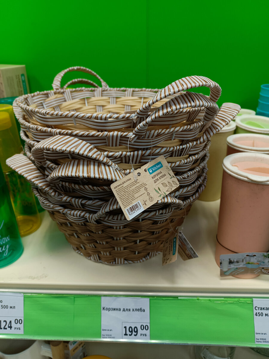 В "Фикс Прайс" сейчас очень много посетителей из-за завоза новинок и широкого ассортимента. И тратя тут деньги никто не жалеет о покупках, так, как все они нужны для дома и быта. В этом обзоре, делюсь с вами увиденным в "Фикс Прайс" города Новороссийск. Большая плетёная корзина с ручками для хлеба, аккуратная и эстетично смотрится. Цена 199 рублей. Гель для стирки цветного белья Qualita объёмом 3 литра, сохраняет яркость ткани и придаёт свежесть. Цена 255 рублей. Трёхслойная мягкая туалетная бумага Papia, в упаковке 6 рулонов. Цена 127 рублей. Набор из 3 стеклянных банок с пробковыми крышками на подставке, разного объёма. Цена 349 рублей. Тонкая скатерть с рисунком из ПВХ размером 135/110 см, для дачи, отдыха и туризма. Цена 149 рублей. Большой пластиковый органайзер для косметики и аксессуаров. Цена 249 рублей. Расчёска для волос с деревянной ручкой. Цена 199 рублей. И рядом деревянный гребень. Цена 99 рублей. Кусачки для ногтей в оригинальном чехле. Цена 99 рублей. Набор прозрачных ф