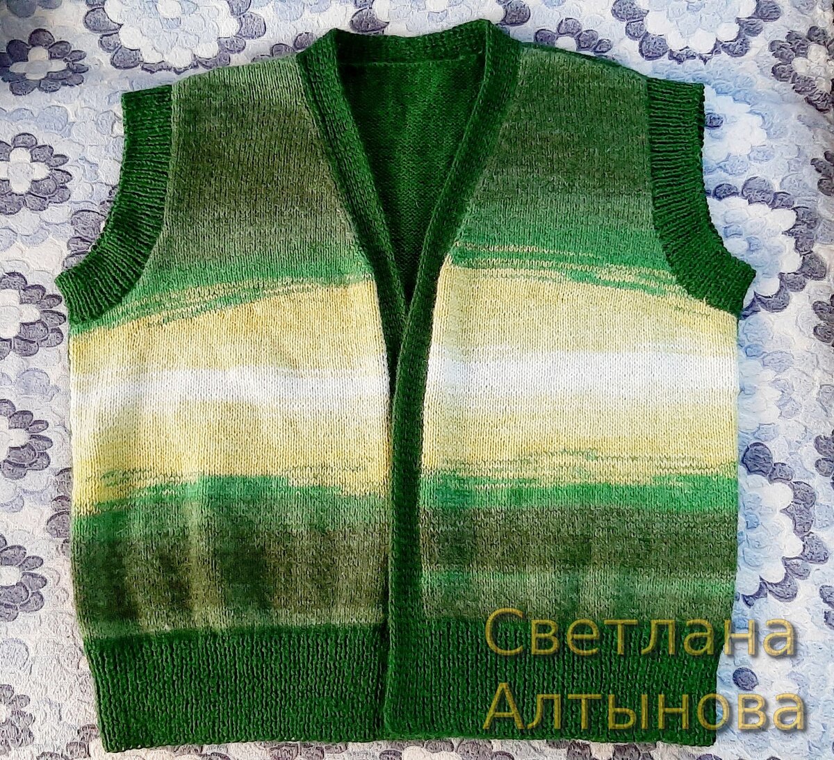Бывает у Вас так, что решили связать простую, почти базовую вещь, а потом всю голову "сломали" над деталями и нюансами? У меня - почти всегда!)) Вот и сейчас, понадобился моей маме обычный, домашний жилет или безрукавка. Конечно, я свяжу, нет ничего проще. Размер у мамы 58-60. Подобное изделие я ей уже вязала Пряжу брала Alize Angora Gold, однотонную и секционного окрашивания. Пряжа эта тонкая, поэтому вязала в две нити. Хозяйка осталась довольна, но со временем стала жаловаться на колкость. Зачем носить изделие, в котором не комфортно? Лучше связать другое. Теперь для жилета я купила пряжу Alize Superlana Klasik, в составе 25 % шерсть, 75 % акрил, в 100 г, 280 м, цвет 36 (терракот) Из такой пряжи вязала себе свитер, ношу на тело, не колет. Все мамины мерки у меня есть. Осталось выбрать модель и узор. Хотела простенький, но простота бывает разная. За деталями, конечно, в Интернет! Может быть связать патентной резинкой? Или лучше выбрать нехитрый ажур? Или длину побольше? И косы и