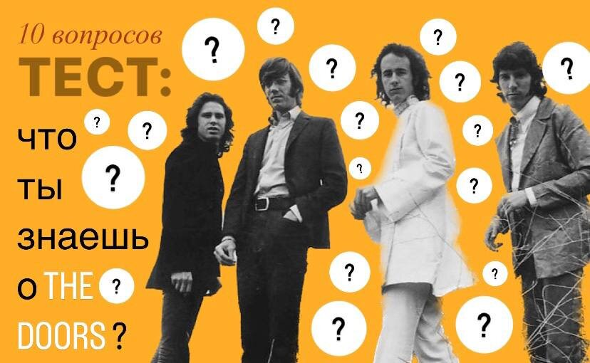 The Doors - та легендарная группа, которая потихонечку начала переворачивать музыку 60-ых, привнося в неё элементы рока, которые совмещались с блюзом, загадочные текста, стильные образы и причёски участников, танцы, вызывающее поведение и ещё много чего другого! Вопросы я подобрал достаточно легкие, поэтому тест будет простым для заядлых слушателей и для тех, кто знает группу поверхностно! Уверен, вы справитесь! А если нет - не беда, вы точно узнаете что-то новое!) Надеюсь, тест вам понравился и он не оказался слишком трудным или слишком легким. Пишите свои результаты в комментариях, мне интересны ваши итоги! А ещё напишите, любите ли вы Дорз и какая их песня ваша любимая!