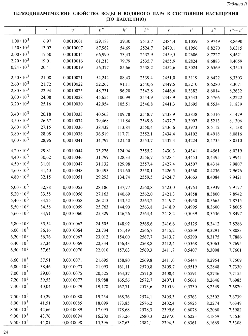Термодинамические свойства воды и водяного пара в состоянии насыщения (по давлению)