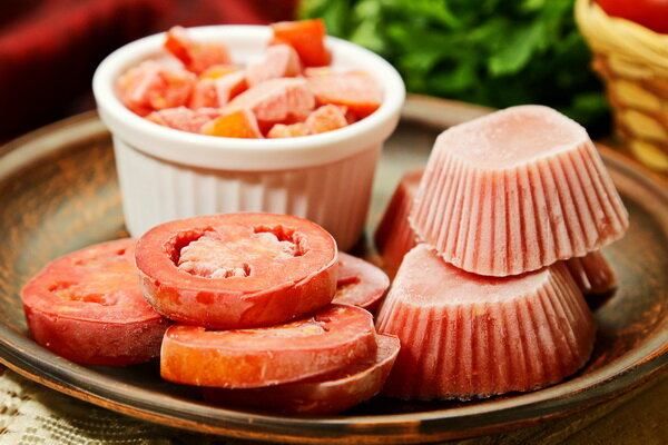 Заморозка помидоров на зиму – это быстро, просто и практично. И дешево. Летом ароматные свежие помидоры можно собрать с дачной грядки или купить на рынке совсем недорого и заморозить на зиму. Использовать по мере необходимости, как и свежие, добавляя в супы и борщи, в овощные рагу, каши, подливки и соусы – много где найдется им применение. Салат, конечно, из замороженных помидоров не сделаешь, но все остальное – без вопросов. Замороженные помидоры даже в пиццу, пироги и запеканки годятся. Нужно, не размораживая, разложить кружочки помидор на пицце или в запеканке, пироге и закрыть их начинкой или слоем овощей. Заморозить на зиму можно любые помидоры, не выбирая самые красивые для этой цели. Для томатного пюре, которое потом добавите в суп или в поджарку, соус, возьмите спелые, мягкие помидоры, и неважно будут ли они мясистые или наоборот – очень сочные. А для нарезки нужны крепкие плотные томаты, у которых много мякоти и нет сока. Их легко нарезать кружочками или кусочка