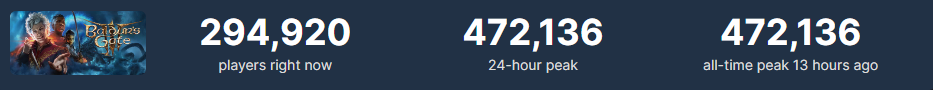 Многообещающей игре – многообещающий онлайн. Вчера вышел один из самых ожидаемых релизов этого года. Выход ждали более миллиона человек и почти 6 лет, 3 из которых игра была в раннем доступе. Сколько рекордов игра уже побила? Вероятно, на выходных онлайн будет еще больше, поэтому серверам Steam стоит подготовиться, так как в некоторых странах уже были замечены сбои или отключение серверов. Такая большая нагрузка на серверы, несомненно, объясняется тем, что Baldur’s Gate 3 имеет внушительный размер — 122 Гб, и предварительную загрузку разработчики не предусмотрели, что вызвало трудности для многих пользователей. Глава Larian, Свен Винке, выложил твит, где приносит извинения всем, кто столкнулся с проблемами и сбоями в процессе запуска игры. Тем не менее, сервера Steam справились с нагрузкой достаточно хорошо. Хотя после запуска Baldur’s Gate 3 было замечено увеличение количества сообщений об отключениях, эти проблемы быстро прекратились. Неофициальная страница Steam Status также не соо