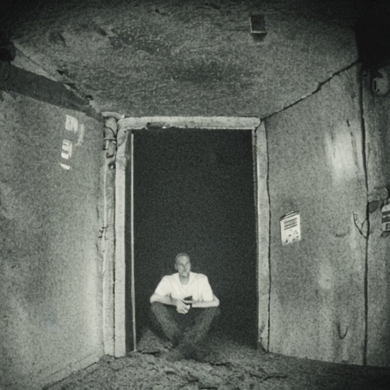 И определенно, не ожидал найти бункер там, глубине леса, с выцветшей полицейской лентой на открытой двери, висевшей на одной петле с обугленным замком. Вход зиял черной пастью, словно кто-то вырезал отверстие прямо в ткани реальности, глубокая непроглядная тьма резала глаза. От одного вида у меня скрутило живот. Оно излучало боль. Это имеет смысл? Я думаю, что какая-то часть моего рептильного мозга выделяла детали, которые не стали бы очевидными, пока не подойдешь поближе, например, кровавые полосы от пальцев, испачкавшие ручку в том месте, где кто-то яростно и безуспешно скребся в замок. Или разбитое молотком, все еще лежащим неподалеку, крошечное смотровое окошко. Мельком взглянув на него, я невольно представил, как семья по очереди стояла там и кричала в лес, отчаянно моля о спасении.