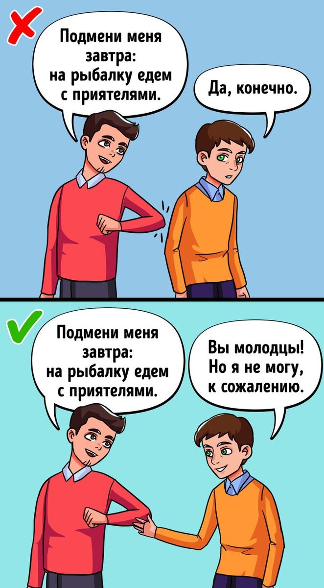 Предлагаю чаще напоминать себе, что «нет» означает лишь то, что в данный момент у Вас нет возможности выполнить просьбу.