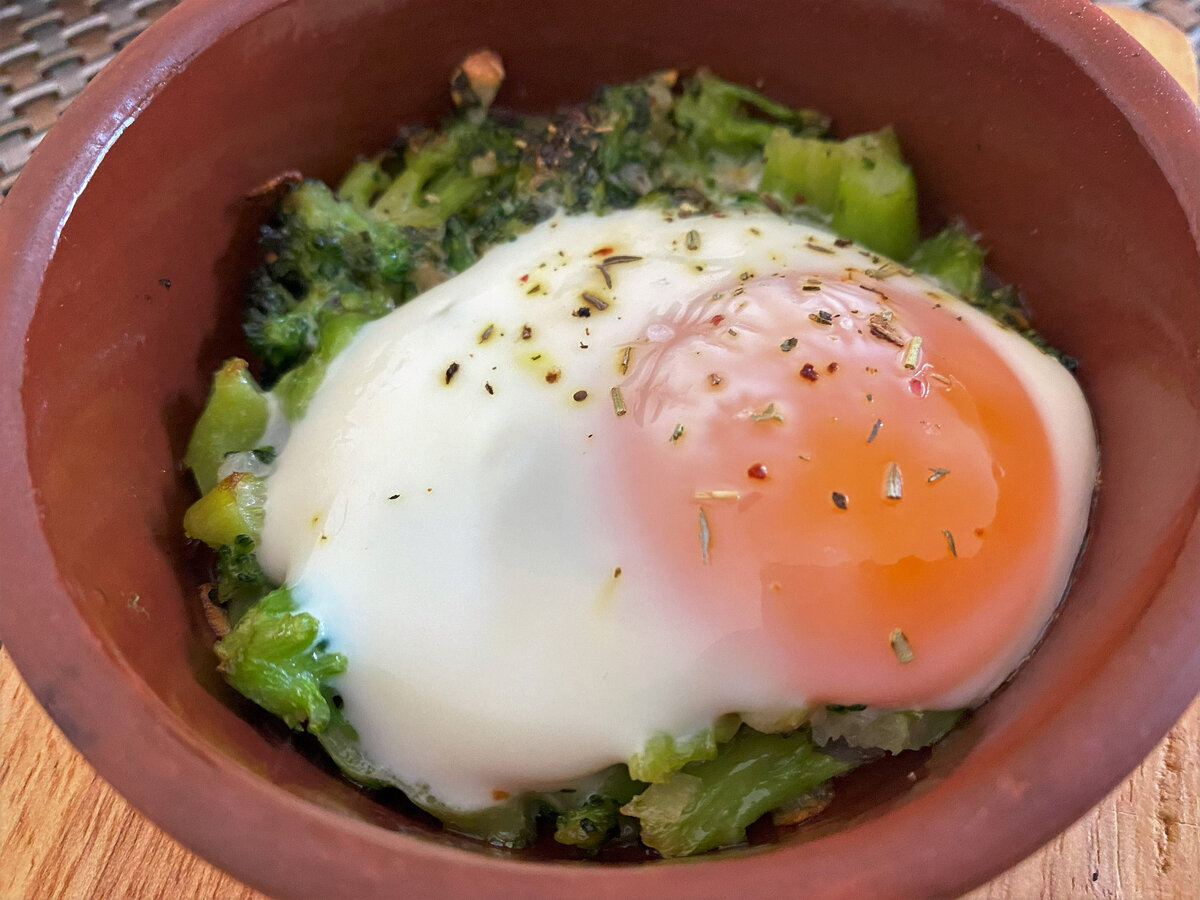 Но кто их слушает 😉 Яйца с овощами - польза² !!! Поэтому сегодня делюсь с вами еще двумя вариантами яиц завтрака из яиц. Глазунья с брокколи Мне нравится яйца запекать в духовке, но можно тоже самое приготовить на сковороде. Благо брокколи есть в продаже круглый год, а у некоторых запасливых белочек, как я, имеющих свой огород, уже созревают первые кочанчики на огороде, излишки которых будут заморожены на зиму 👇👉 Готовится очень просто, Очищенный чеснок мелко нарезать. Обжарить на сливочном масле. Если используете замороженный брокколи, размораживать его не надо, обдать водой из-под крана, и нарезать небольшими кусочками. Если используете свежий брокколи, кочанчики предварительно отварить в кипящей воде в течение 3-5 минут, в зависимости от степени желаемой твёрдости продукта в готовом виде. Отправляем подготовленный брокколи в сковороду к чесноку, доводим до готовности.