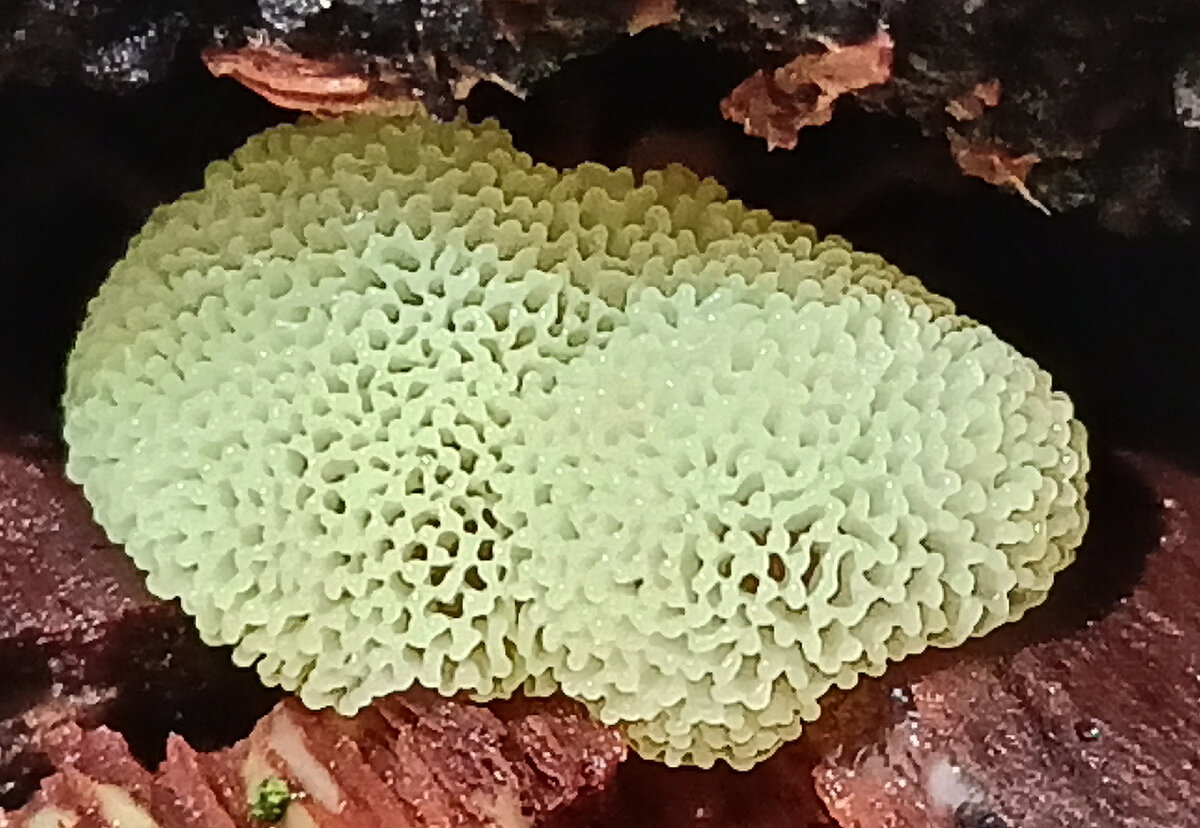 Маленький мир Слизевиков так же богат видами и разнообразен, как и мир грибов, и мир животных. Наверное, причина кроется в том, что Слизевики относятся одновременно и к первым и ко вторым. Сегодня я познакомлю Вас с еще одним видом Гриба-Амёбы. Это Слизевик Цератиомикса Пориевая. Ещё его называют Коралловая Слизь. А на латыни Ceratiomyxa porioides. Если второе слово позволяет легко понять значение, то о Ceratiomyxa стоит пояснить. Сложили его из двух слов - латинского Ceratus - "Вощёный" и Древнегреческого Myxa - "Слизь". Нет, читается не муха, а микса )) Распространённый по всей планете Слизевик Цератиомикса предпочитает жить в гниющей древесине, среди опавших листьев. Жизнь его протекает точно так же как и у остальных Слизевиков. Живущие по отдельности микроскопические амёбы в какой-то момент сливаются в один организм, образуя Плазмодий. Он выходит из гниющей древесины, растекаясь по поверхности тонкой слизью. Тонкослойный полупрозрачный плазмодий покрывает слизистая оболочка. Каж