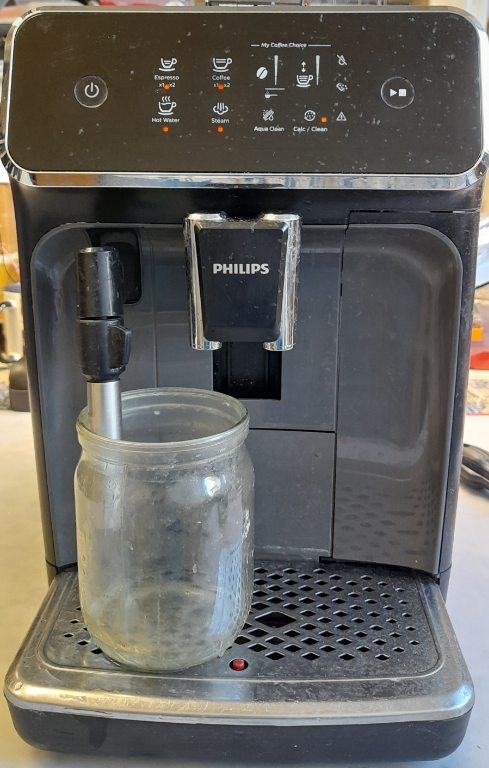Всем здравствуйте! Сегодня у нас на ремонте кофемашина Philips EP1221 с диагнозом не подаёт кофе, вся вода проливается через "носик" подачи пара/капучинатора. При промывке вода льётся не через "сопла" , а через носик пара и при приготовлении кофе из носика пара льётся вода, а в контейнер для жмыха сбрасывается сухой помол. Вот такая замухрышка :)) Ремонт в принципе простой. Но главное наличие деталей или возможность отремонтировать сломанное. Будем разбирать. Откручиваем верхнюю крышку. Снимаем и видим внутряночку. Выкрутив ещё парочку саморезов снимаем левую боковину. И видим следующую картину . Собственно вот он виновник. Клапан пар/вода. Проверил просто. Вытащил шланг высокого давления из бойлера и дунул в него :) Воздух пошёл через носик капучинатора. Это электромагнитный клапан. Он при отсутствии на нём напряжения должен быть закрыт и вода должна протекать из бойлера в варочный блок. А когда требуется пар он переключается. Ну в общем что я сделал. Для начала подал на него нап