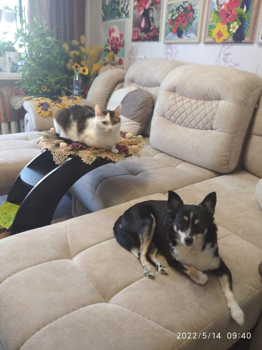 Они очень благодарны тем, кто их приютил и быстро просекают все правила. И ему теперь никто не даёт 12 лет. Теперь он 4 килограмма. И теперь это мой "хвостик", везде за мной следует, всегда рядом. Если я меняю правила, он понимает с первого раза, будто по - русски понимает...Мол, дальше немного иначе. Кстати, встречает у двери быстрее собаки. Всегда провожает. Я точно знаю, что в прежней семье он многое из этого даже и не делал, что делает сейчас, он точно драл диван и кресла, не выбегал встречать, не желал никому спокойной ночи, как мне... Подойдёт , бодается, мурчит...