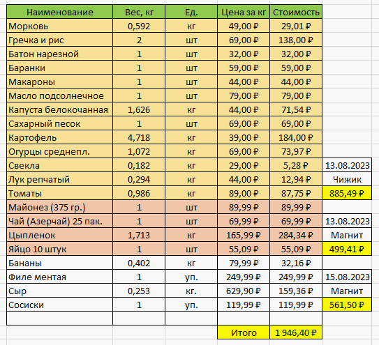 Приветствую вас на моем канале. Продолжаем наш эксперимент по выживанию на 6 000 рублей в месяц. Напомню, что эту сумму я трачу только на еду и только на себя. Это чуть меньше половины прожиточного минимума в нашем регионе. А я из Перми. Рекомендую, начать читать с самого начала этого мини-сериала, чтобы понимать, что откуда берется и куда девается. В конце каждой серии есть ссылка на последующую. Таким образом, вы ничего не пропустите. Итак, за все время эксперимента мною были куплены следующие продукты: Все чеки я предоставлял в предыдущих сериях. Повторяться не буду. Сегодня я позавтракал чаем с двумя бутербродами с сыром. Многие рекомендовали добавить в мой завтрак белок. Вот, добавил. На обед у меня сегодня будет жаренная картошечка с двумя сосисками. Ну и салатик из помидоров и огурцов. А на ужин у меня осталась последняя из четырех порций борща. Фото было сделано во второй день. Переснимать смысла не увидел. P.S. Помимо супа, попил еще чай с одной баранкой. На этом, я думаю, по