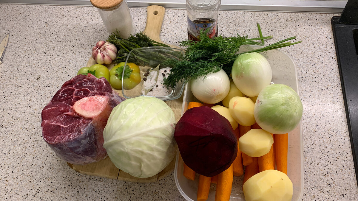 Друзья! Сегодня я расскажу вам, как готовлю это прекрасное первое блюдо - борщ. Скажу сразу, важно - уделить особое внимание бульону, именно бульон делает наше первое блюдо насыщенным и абсолютно незабываемы на вкус. Для приготовления нам понадобиться: 1.Мясо- я беру говяжий подбедерок (часть задней ноги, выше голяшки.) - говядина на кости. Цена на такое мясо довольно адекватная. И как ранее я написал, мясо на кости, а кость с костным мозгом, именно костный мозг и придаст нашему борщу невероятную насыщенность и вкус. 2. Лук 3. Морковь 4. Свекла 5. Капуста 6. Томатная паста 7. Картофель 8. Чеснок 9. Укроп 10. Лавровый лист 11. Перец черный 12. Перец сладки «ласточка» (по желанию) 13. Сахар 14. Яблочный уксус Шаг 1. Подготовка Мясо промыть, просушить. Овощи помыть, очистить. Шаг 2. Бульон на дно заранее подготовленной кастрюли помещаем мясо (цельным куском). Далее, также в кастрюлю помещаем 1 морковь, 1 луковицу, 2-3 лавровых листа, стебли укропа, от сладкого перца отрезаем хвостик