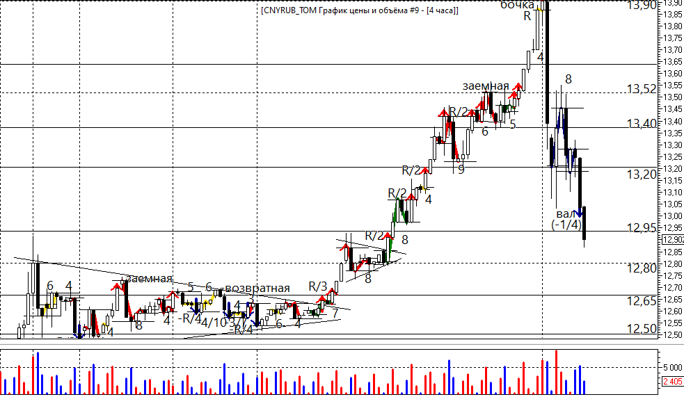 НА ЮАНЕ ИЗМЕНИЛОСЬ НАПРАВЛЕНИЕ ТРЕНД-ВЕКТОРА, НО ПРИ ЭТОМ ОБРАЗОВАЛСЯ ВАЛ (-1/4).