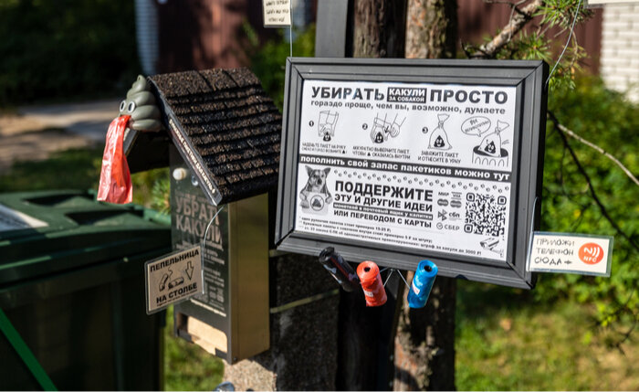 Пару месяцев назад закончилась моя раздача капсул-диспенсеров с пакетами для уборки за собаками, план был раздать 100 штук и его, конечно, легко удалось выполнить) Не все прохожие были добропорядочны, но если хотя бы каждый пятый или даже десятый диспенсер попал к владельцу собаки, то это уже успех. Продолжение раздачи не заставило себя ждать, только теперь вместо диспенсеров раздавать буду рулончики пакетов. Это помимо штучных пакетов, которые никуда не делись и не девались всё это время. Купил для начала 100 рулонов, половина зелёных, половина разноцветных (на фото не все): Вместо крючков, на которые вешал брелки-диспенсеры, прикрутил загогулины из проволоки, куда нанизал пакетики чтобы удобно было брать: В комментариях народ отмечал, что пользоваться пакетами можно и без всяких диспенсеров, просто храня рулон в кармане, так что полезны пакеты в таком формате могут быть всем собачникам. Ну и конечно вся эта история служит не только точкой раздачи халявных пакетов, но и напоминанием,
