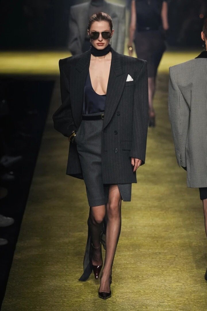 Осенний образ от Saint Laurent сезона 23/24 – какой он? Это жакет с широкими плечами и аккуратная юбка-карандаш. Добавьте майку с глубоким вырезом, золотые серьги-кольца, квадратные солнцезащитные очки, пару блестящих лакированных туфель - и все готово! Широкие плечи не являются чем-то новым для Saint Laurent, и последние несколько сезонов дизайнер акцентирует внимание на этом силуэте. Любите блузки и банты – тогда вам точно надо что-то в стиле Saint Laurent. Ну, а когда похолодает, накиньте мохеровый палантин, который будет эффектно ниспадать с широкого плеча модного жакета. Ну и не забудем о кашемировых брюках. Так что для любителей опьяняющей элегантности выбор есть! tissura.ru