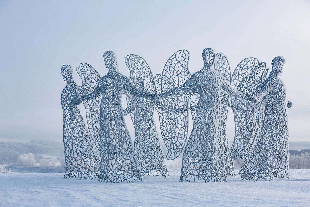 Скульптура, что это – смысл или украшение? Я все-таки за смысл. Во-первых, потому что перед изготовлением скульптуры художник видит определенный образ, который хочет воплотить, а значит он закладывает определенный смысл, идею и обязательно хочет что-то донести до своего зрителя. Например, обратите внимание на скульптуру «Братья» в исполнении Weld Queen (Королева сварки), которая сейчас стоит в парке в Липецкой области. От автора: «У меня возникла идея сделать 7 ангелов, которые держатся за руки, образуя хоровод. Но в этом хороводе пустует одно свободное место. Чтобы он замкнулся, туда должен встать человек и взять за руки двух соседних ангелов.» Сколько смысла, какой глубокий посыл дает автор. Сама скульптура просто завораживает своим сюжетом. Во-вторых, место вокруг скульптуры делает ее важной, т.е. прежде чем задумать скульптуру глубоко изучается место где она будет стоять, вот и получается смысл скульптуры продолжает историю места в котором она стоит. Например: Скульптура посвященна