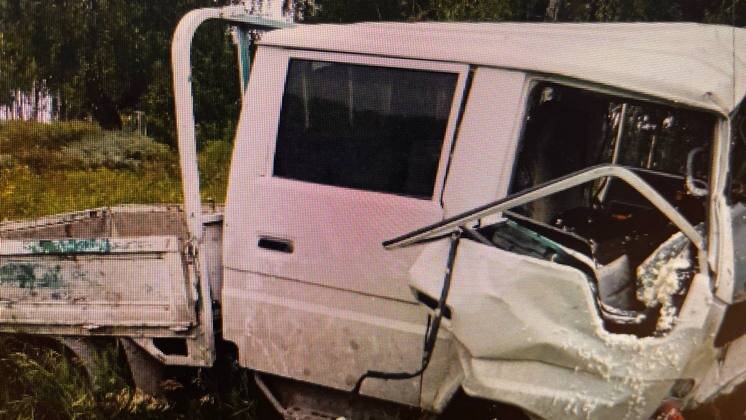 Под Новосибирском автомобилист задел КамАЗ и улетел в кювет