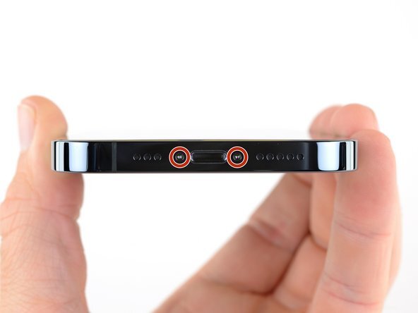 Открутите два винта pentalobe P2 длиной 6,75 мм на нижнем крае iPhone.