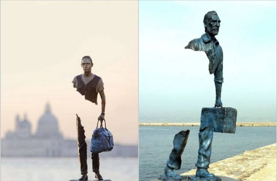Бруно Каталано и его невесомые скульптуры. Найти свою нишу и создать неповторимый стиль в многогранном мире искусства непросто. Но скульптору Бруно Каталано это точно удалось, ведь его работы узнать можно сразу. Именно он создает фигуры, которые словно незакончены, будто кто-то вырезал из них фрагмент. Эта серия работ называется Les Voyageurs или «Путешественники». Каждая скульптура запечатлена в движении: она делает шаг. При этом фигура, на первый взгляд, держится на очень слабой и тонкой опоре, и это дополнительно придает ей какой-то сюрреалистический вид и невесомость. Каталано по происхождению итальянец, он родился в Марокко, а в 10 лет переехал во Францию За его плечами — долгий путь миграции Также он был моряком и объездил земной шар на корабле Весь свой жизненный опыт он вкладывает в «Путешественников» Фигуры Каталано действительно путешествуют: они стоят в разных городах планеты У статуй есть одна уникальная особенность: они зависят от пейзажа вокруг Именно по этой причине даже