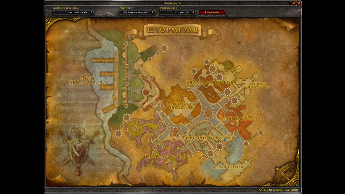 Забегаем в город (Штормград) и у любого стражника спрашиваем дорогу к интересующему месту