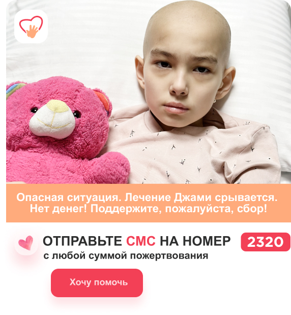 Из-за очень низких показателей крови девочке отменили химиотерапию. Каждый день Джами проходит на грани. Девочка может потерять жизнь, не дождавшись помощи. В любой момент ей могут отказать в лечении, маме нечем платить по счетам клиники. Остановка терапии может привести к необратимым последствиям. Спасите Джами жизнь! ПОМОЧЬ ДЖАМИ > Здравствуйте, наши друзья! У нас вновь тяжёлые новости от Джами. «На днях моей дочери из-за низких показателей крови отменили третью химию. Начали капать эритроциты и тромбоциты. После будет решение, делают химию или еще подождут. Я очень переживаю, остановка химии опасна, опять может вырасти количество раковых клеток. А ещё мне очень страшно, что в любой момент нам могут остановить лечение из-за отсутствия денег. Помогите нам, пожалуйста», – молит о помощи мама Джамили. Молчать больше не можем. Это последний шанс спасти Джамиле жизнь! ПОМОЧЬ ДЖАМИ > Джамиля устала жить в постоянном страхе. Помогите! Организм Джамили ослаблен болезнью и тяжёлой терапией. Р