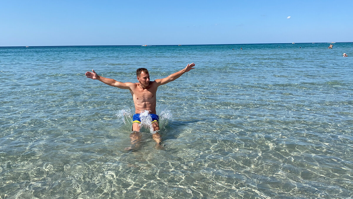 Несмотря на то, что водичка по ощущениям кажется прохладнее, чем на южном береге Крыма, но купаться в ней очень приятно.