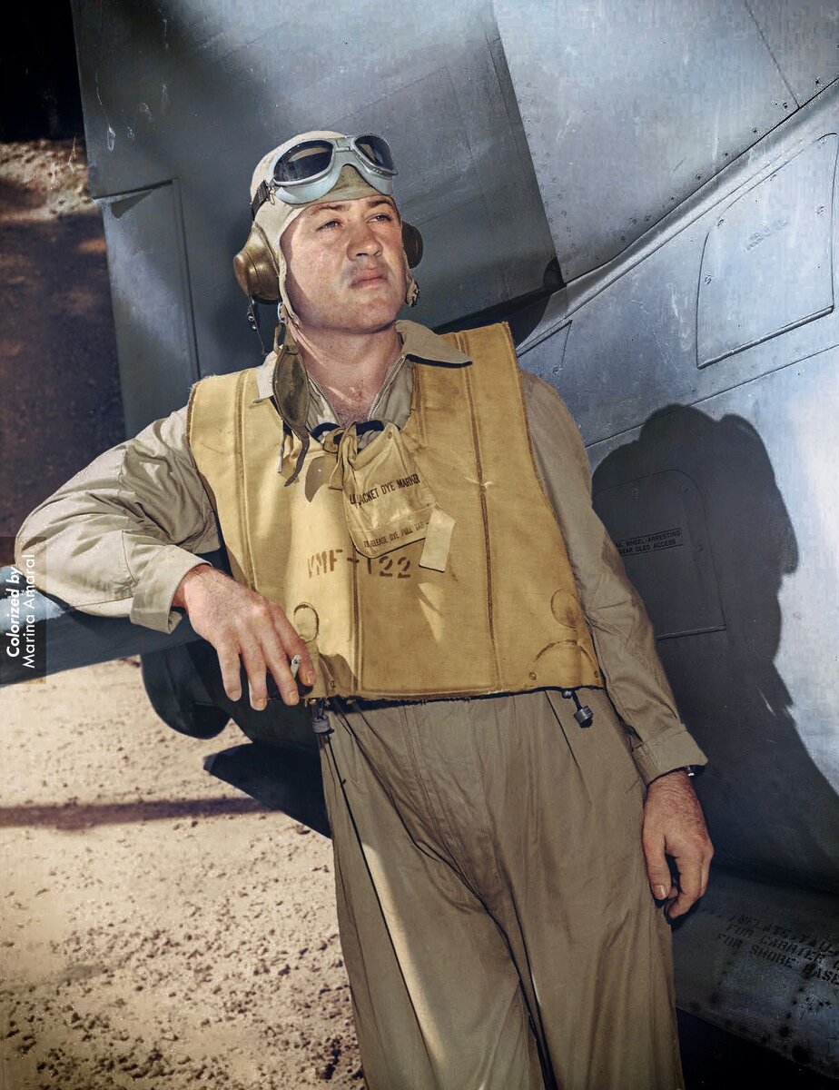 Для того чтобы понимать масштаб личности этой фигуры следует сказать, что это Покрышкин или Кожедуб для Корпуса Морской пехоты. Ас №1 морпехов и один из лучших асов США.