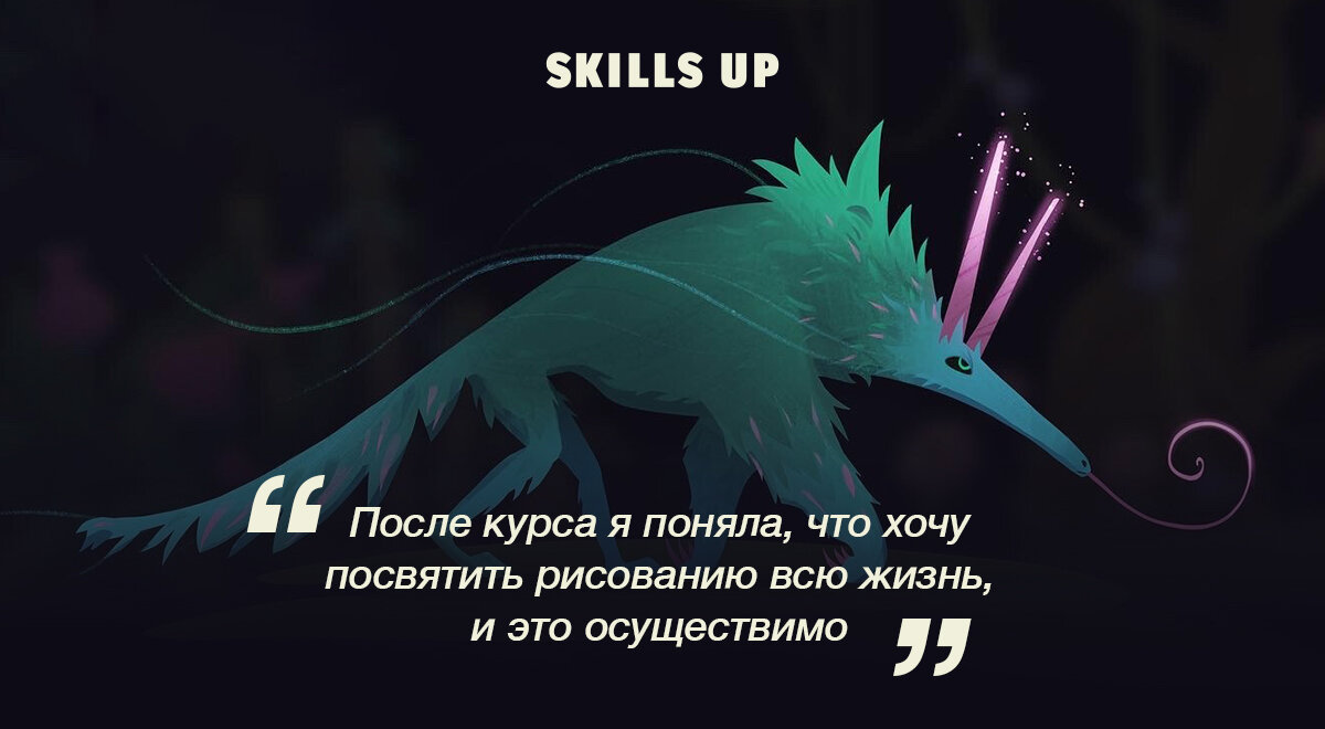 В Skills Up я пришла в 2020 году совершенно спонтанно — за компанию с мужем, который мечтал научиться работать с 3D и сменить профессию на 3D-художника (спойлер: получилось). Так я попала на офлайн-курс 2D-графика Basic к Юлии Хитровой.