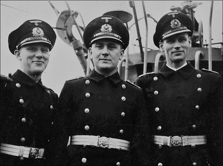 Первоначальный офицерский состав: слева направо - II WO (2-й вахтенный офицер) лейтенант Фальке, I WO обер-лейтенант Браммер, командир корветтенкапитэн Вернер Чиган