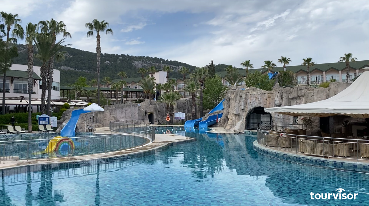 Большой тематический парк водных аттракционов со множеством развлечений для ребят разного возраста. Бассейны, аквапарк, ковбойский городок, луна-парк и т.д. Мини-клуб — 4-12 лет, для 1-3 года — под присмотром родителей. Отличный детский сервис: услуги няни, прокат колясок, баночное детское питание, блендер в основном ресторане (услуги могут быть платными, уточняйте на этапе бронирования).