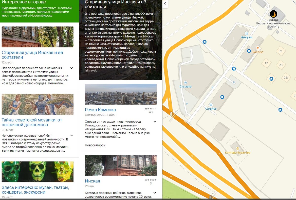 В самом известном новосибирском городском информационном сервисе появился путеводитель от краеведов Новосибирской областной научной библиотеки. Первая прогулка посвящена одной из старейших улиц Новосибирска — Инской. Серия карточек с краткими текстами переносит в начало XX века и познакомит с жителями улицы, остающейся на протяжении многих лет терра инкогнита не только для туристов, но и для самих новосибирцев. Немногие бывали на ней, а те, кто бывал, зачастую даже не подозревают, какие истории она хранит. «Между тем, Инская — старейшая улица Новосибирска. Кто только на ней не жил, от богатых наследников до чернорабочих, от пимоката до содержательницы притона», — рассказывают новосибирские краеведы. Полную версию аудиорассказа об Инской можно найти в аудиогиде на izi.travel. Отметим, что созданием путеводителя по Инской сотрудничество областной научной библиотеки с популярным городским справочником не заканчивается — до конца года планируется опубликовать по крайней мере еще два маршр