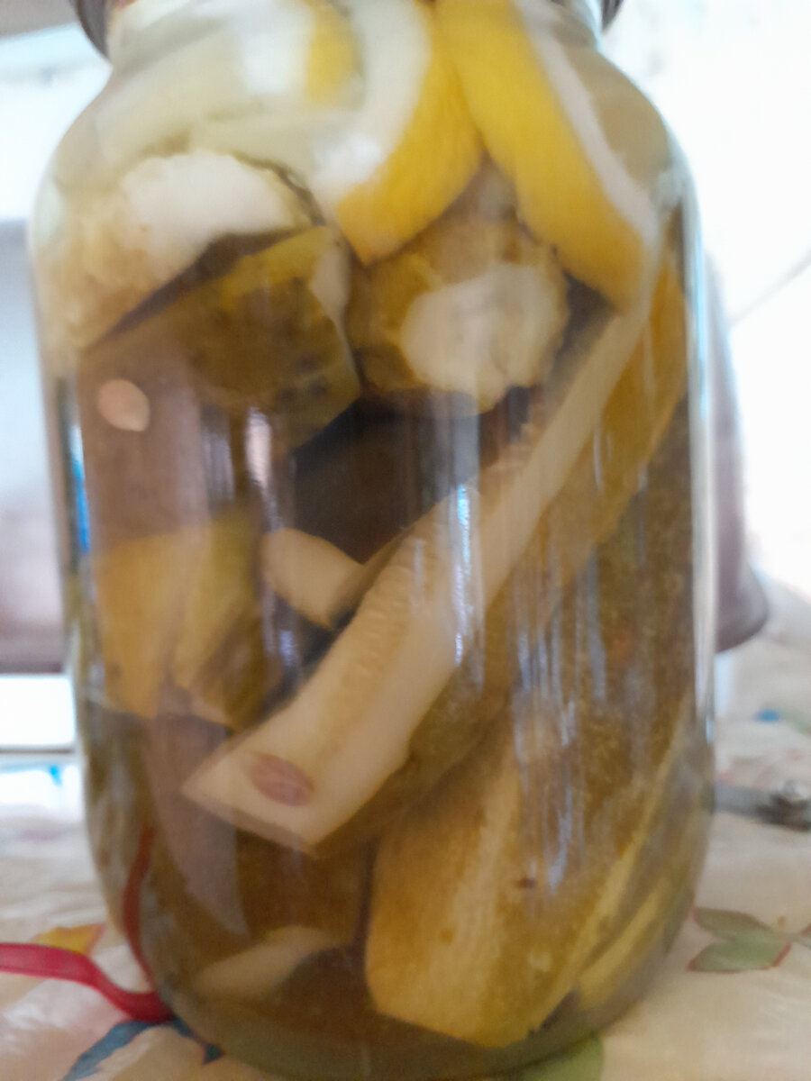В сезон огурцов я делаю очень много заготовок и хочу поделиться с вами рецептами. Они простые, зимой всё съедается на ура. 1. Огурцы с лимоном. На 1 литровую банку нам понадобится: Маринад: • 0.5 л воды. • 20 гр. крупной соли. • 3 ст. ложки сахара. • 0.5 ч. л. лимонной кислоты. • половина лимона. • 2 зубчика чеснока. • 2 шт. лаврового листа. • 1 зонтик укропа. • 3 шт. душистого перца + черный перец горошком. Приготовление: На дно стерилизованной банки уложить специи, огурцы (можно резанные или целые) и лимон ломтиками. Залить всё кипятком, дать постоять и воду слить. Сделать маринад, с момента закипания воды, кипятить 1 минуту, залить кипящим маринадом огурцы, закатать крышками, перевернуть вверх дном до остывания. 2. Огурцы в томатной заливке. Понадобится: • огурцы 3 кг. • масло растительное 250 мл. • вода 125 мл. • сахар 180 гр. • соль 1,5 ст. л. • уксус 9% 100 мл. • кетчуп томатный 250 гр. • кетчуп чили 250 гр. • чеснок 12 зубчиков. Приготовление: На дно большой кастрюл