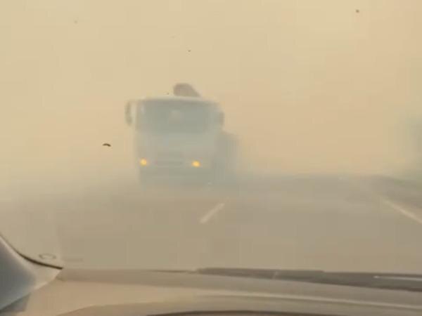 По словам очевидцев, в районе села Пешково вспыхнуло поле. Пламя охватило большую территорию. В небо поднялся огромный столб дыма, который ветер несет на трассу. Из-за этого видимость на проезжей части на участке практически нулевая.