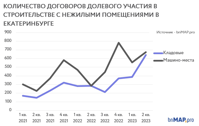 В Екатеринбурге темпы реализации машино-мест за последний год сильно выросли. Нередко в центральных районах покупатели сталкиваются с проблемой покупки машиноместа - предложений от застройщика уже нет или цена становится заградительной. Для некоторых это становится фактором отказа от покупки квартиры в конкретном доме. Недавно Никита Словиковский обратил внимание на заметный рост цен на рынке парковочных мест в Екатеринбурге. Действительно, за последние 2 года этот сектор сильно изменился. Девелоперы, которые всегда жаловались на сложности продаж, удивляются темпам реализации машино-мест. Покупатели тоже удивляются, когда приходят в отдел продаж в надежде купить паркинг, а выбора там уже нет. Совет по текущему рынку – не откладывайте покупку паркинга на потом, решайте этот вопрос в момент приобретения квартиры. По данным аналитической платформы bnMAP.pro количество сделок с машино-местами на стадии строительства (по договорам долевого участия в строительстве) в 1 полугодии 2023 года в