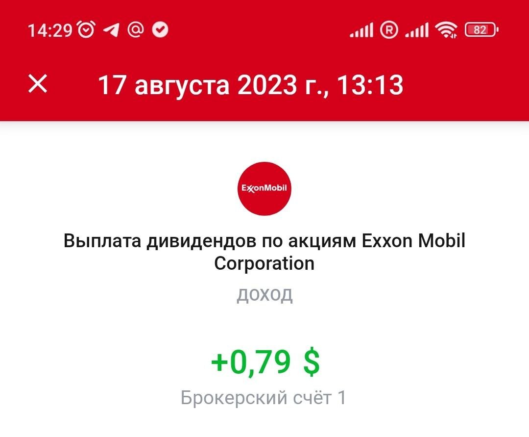 Неожиданные дивиденды по иностранным акциям - Эксон Мобил. Всегда остаётся загадкой за какой же период пришли эти дивиденды.