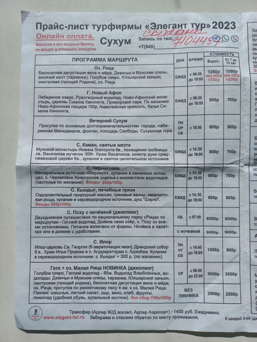 Всем привет! Планируя наше путешествие в Сухум, я столкнулась с тем, что в Интернете крайне мало информации о ценах на экскурсии, актуальных в новом сезоне (прайс, само собой, каждый год растет). А, как мне кажется, очень удобно заранее ознакомиться со стоимостью и, главное, днями недели, в которые осуществляется та или иная экскурсия, чтобы было удобно в спокойном темпе совместить пляжный и экскурсионный отдых. В данной статье, безусловно, представлены прайс-листы далеко не всех компаний, работающих в Сухуме. Однако выбор есть. В следующих статьях я подробно расскажу об экскурсиях, которые мы посетили в этом году. Забегая вперед, скажу, что мы воспользовались услугами турфирмы "Элегант тур". В целом остались довольны организацией, все четко, без опозданий, по программе, но небольшие замечания все же есть. Во время экскурсии в село Илор, по Святыням Восточной Абхазии, за нами приехал микроавтобус, в котором еле-еле работал кондиционер, а июль в этом году был жарким. Также мы отпра