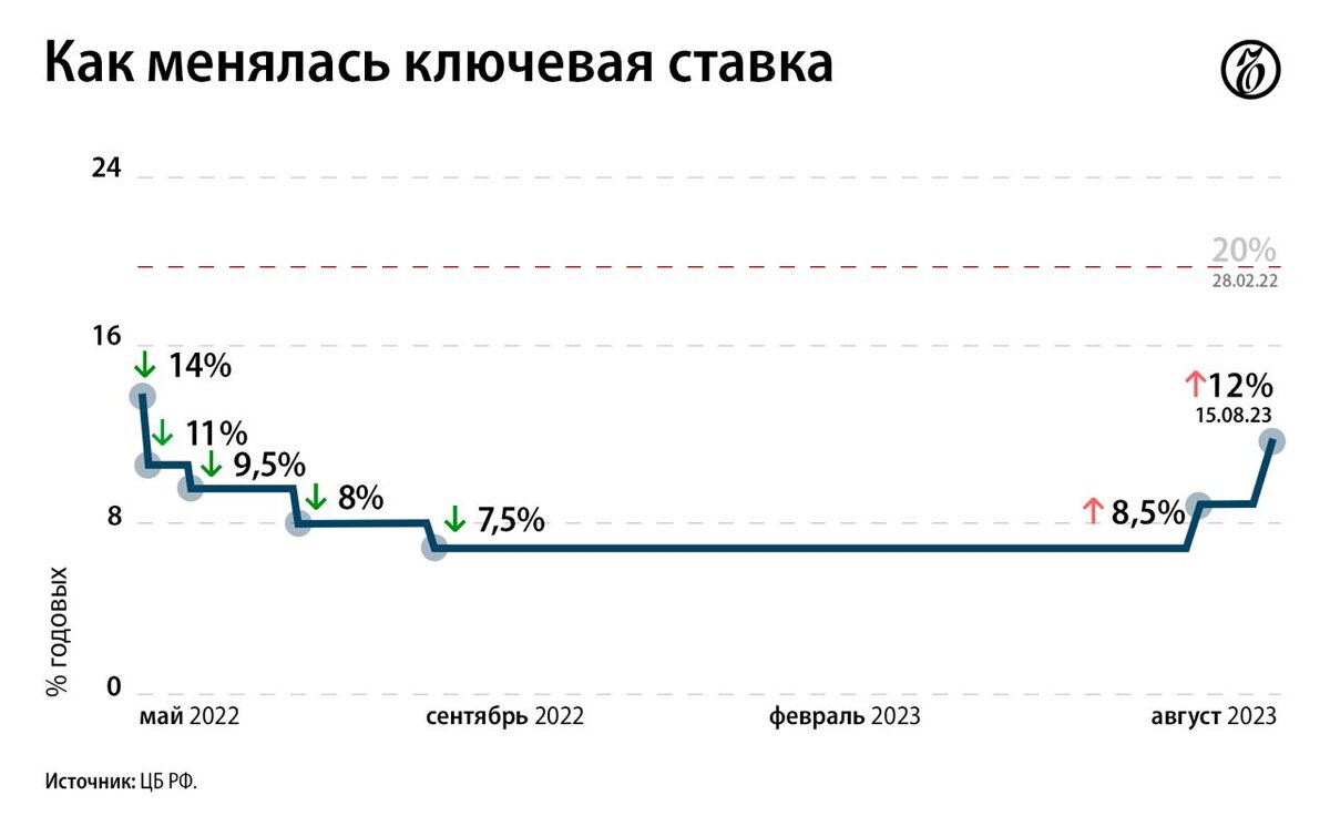 Как заявляют представители ЦБ, это решение было принято с целью ограничить риски для ценовой стабильности. Такие меры были приняты 21 июля, когда годовая процентная ставка повысилась на 1 п.п. и стала 8,8%. И вот 15 августа было принято решение снова повысить ее, после чего она уже достигнет предельной отметки в 12%.