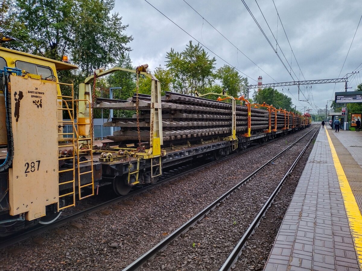 На Савеловском направлении традиционно продолжались ремонтные окна. Хоть и открыли Д1, но отмены и прочее - никуда не делось. Это уже как аксессуар проекта. Поэтому пришлось в очередной раз ехать с перепрыгом по Лобне, ибо почти все дальние электропоезда были обрезаны по данной станции из-за ремонта на перегоне Москва-Бутырская - Бескудниково. Я еще подумал, а что там делать то? Буквально года два назад уже проводили сплошной капитальный ремонт. Уже когда подошел к платформе, заметил стоящий путевой состав на 2 главном пути, который как раз делали совсем недавно и вот опять. Ладно мы привыкли, что мэр плитку перекладывает часто, но чтоб пути - новенькое, однако. Взял билет до Савелово обратно, как назло усилился дождик, но это даже хорошо, подумал я. Камеру доставать было крайне лениво, поэтому снимал на телефон. Потихоньку снимали старое полотно (условно старое) и готовили верхнее строение пути к укладке свежих путей.