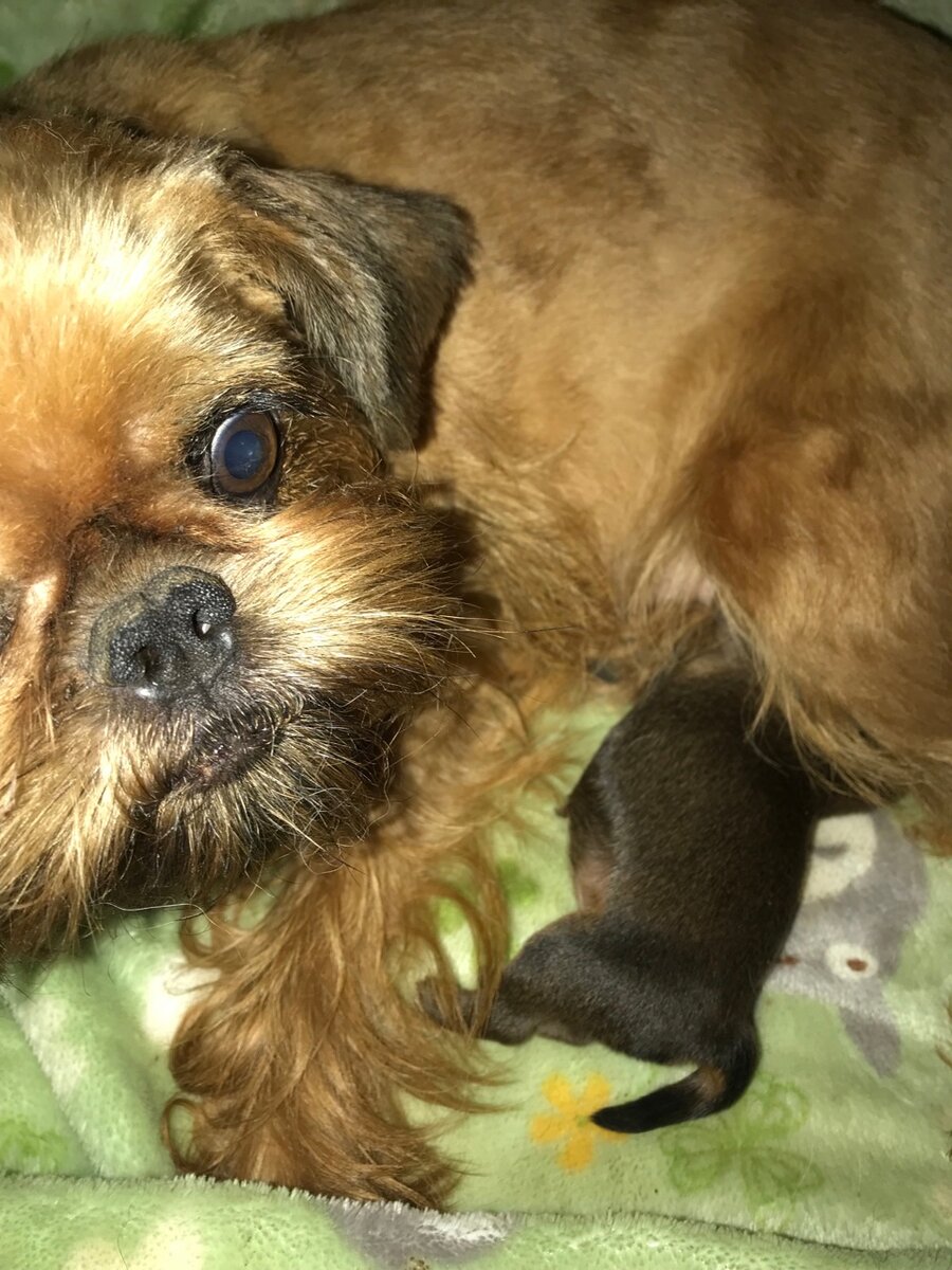 Бегом с ней домой, ее в ванну и под душ. Смывать землю. Попыталась вытащить – орет, ей больно. Щенок очень крупный. Понятно, что уже мертвый. Хорошо, что дома есть еще запасы сенсиблекса. Уколола, чтобы снять спазм, и через некоторое время попыталась снова помочь. Орет, жрется. Больно! Замотала ей голову полотенцем, зажала себе подмышку и под Челестины вопли аккуратно вытянула «репку». Мертвый, конечно…. Почти 400 грамм! Монстр просто. Это вполне полноценный щенок ротвейлера так, на минуточку…. А сравнить размеры гриффона и ротвейлера? И ты, овечка, этого монстра ушла рожать в одиночку, да еще под землю! ИдиЁтка!!!!