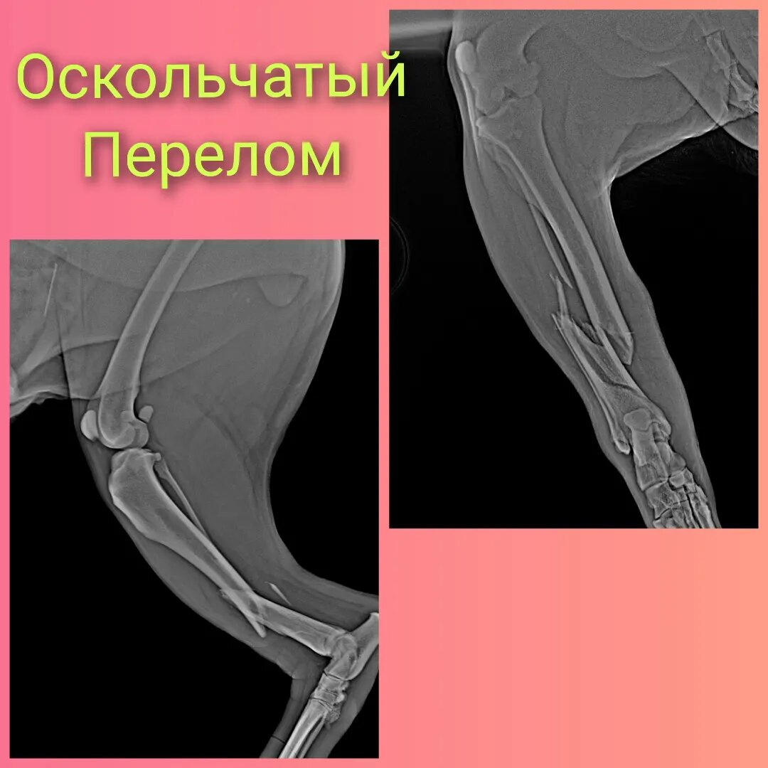 Рентген показал оскольчатый перелом правой задней лапки, место , где она обитает опасное, оживленная трасса, ее туда подкинули 4 года назад.