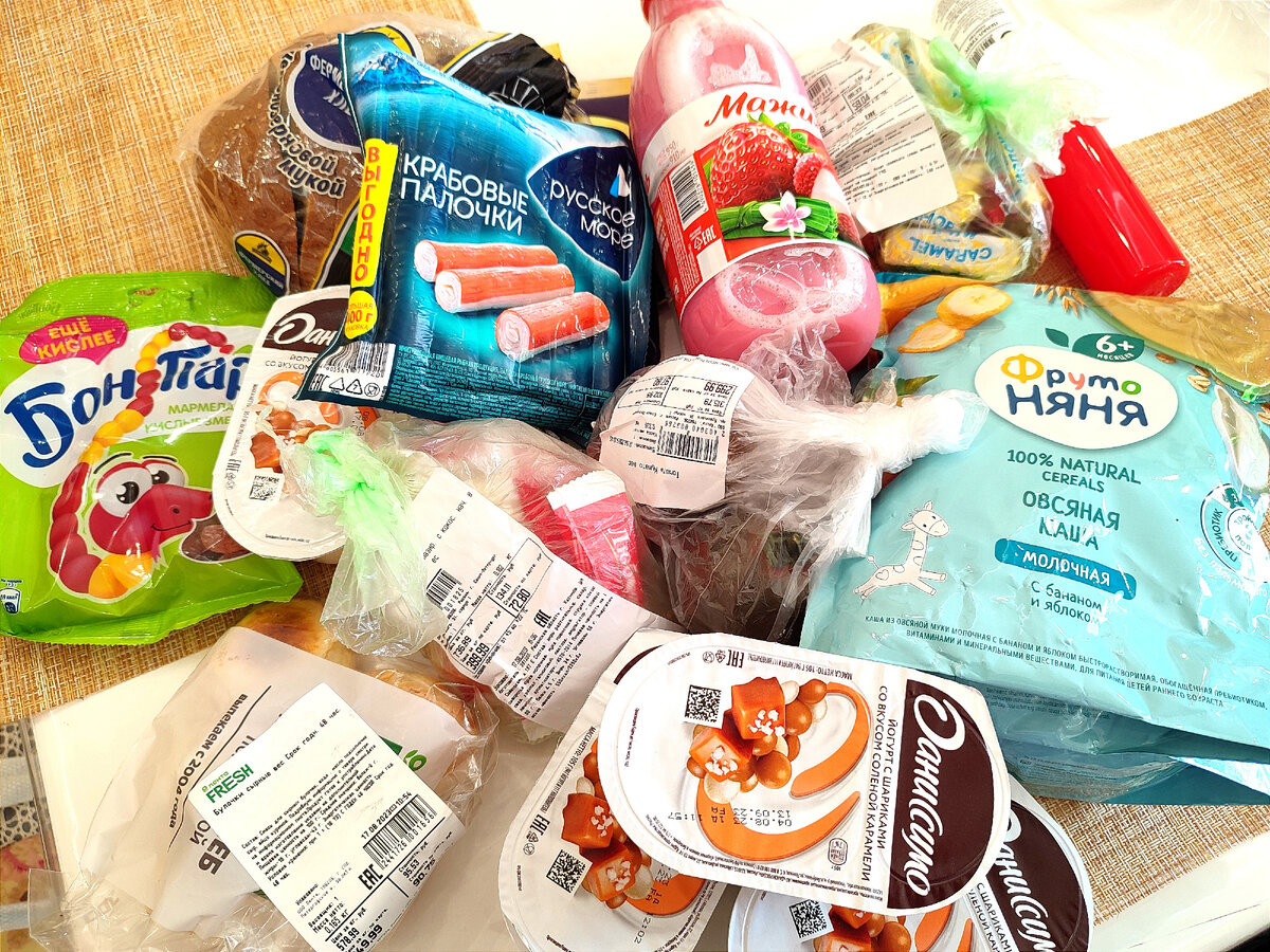Здравствуйте, дорогие друзья и уважаемые гости👋 Сегодня первый раз побывала в огромном магазине Гипер Лента. Кое - что прикупила и сейчас вам покажу. Крабовые палочки 400 гр.- 219,39 руб. Пусть лежат в холодильнике, думаю скоро сделать салат. Студень говяжий - 739,99 за кило. Этот студень - холодец попросил взять сынуля. На вкус ничего так, но мне не хватило чеснока и приправ, что ли. Кусочек у нас был небольшой и мы его вечером с картошечкой "уговорили". Раньше для меня всё равно было - что студень, что холодец. Обычно холодец говорили. Оказывается, есть разница. Холодцом обычно называют блюдо, бульон которого готовился из чистой свинины или добавлением говядины. А вот основа для студня – чисто говяжий бульон (из открытых источников). Из овощей взяли вот такие помидорки. Они очень вкусные и красивые. Томаты "Кумато" стоят 299,99 руб. за килограмм. Хлебушек купили "Фермерский" (47,99 руб.), нравится он нам. Другой можем не доесть, а этот всегда уходит на "ура". Ещё увидели