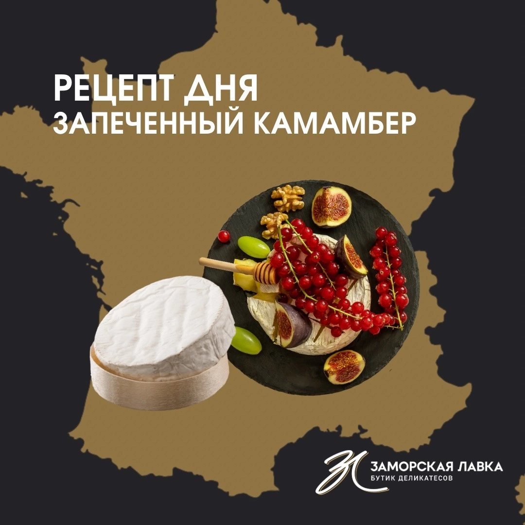 2️⃣ Достаньте камамбер из упаковки (бумагу, в которую завернут сыр, можно оставить), сделайте не очень глубокие надрезы крест-накрест на верхушке сыра и переложите его в форму для запекания.
