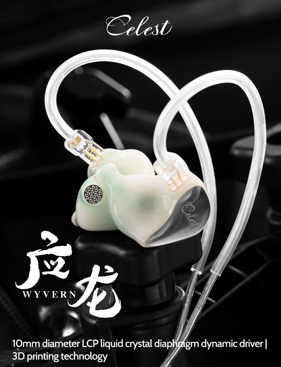 Celest Wyvern - новые динамические наушники. Под капотом динамик с 10-мм LCP диафрагмой. Модель выпускается в обычной версии и версии Wyvern PRO с внешним микрофоном.