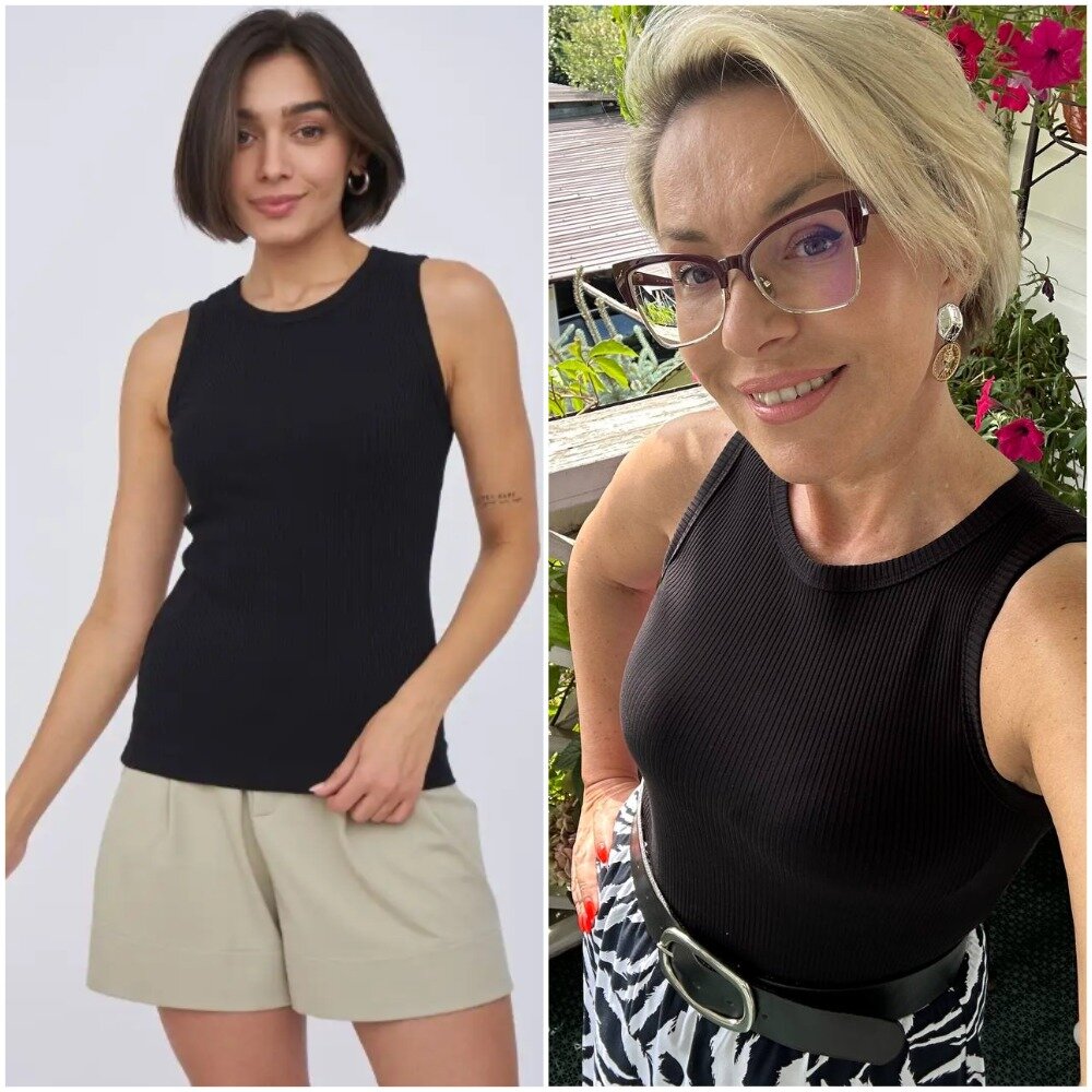 Эти топы я беру уже не в первый раз, у меня есть множество разных цветов, и я их просто обожаю. Это та база, без которой представить свой гардероб просто невозможно. Топы не садятся после стирки, и вообще сов временем никак не деформируются, у них хороший состав (за счет эластана топы хорошо тянутся) и широкая размерная сетка (до 54).