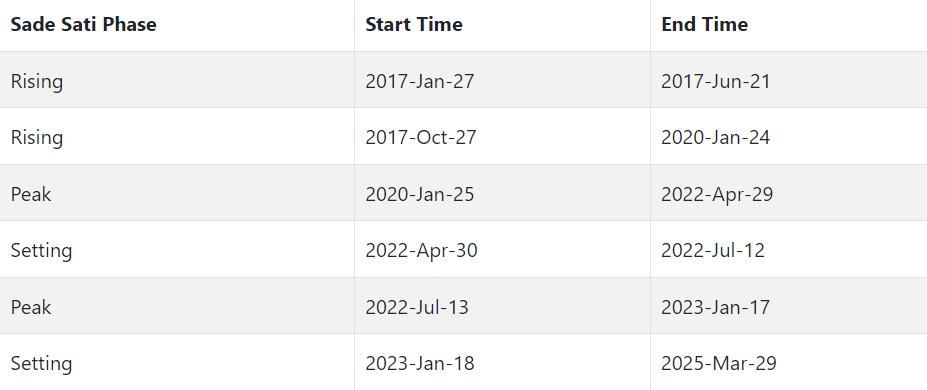В первой колонке отображен период Саде Сати: Rising, Peak, Setting (о том, что они значат, расскажу в следующем посте).