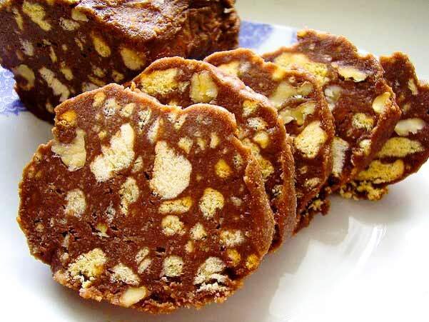 Дальше, видимо, процесс приготовления десерта был больше похож на привычный нам рецепт: готовое печенье смешивали с шоколадной массой, формовали и отправляли в холод.