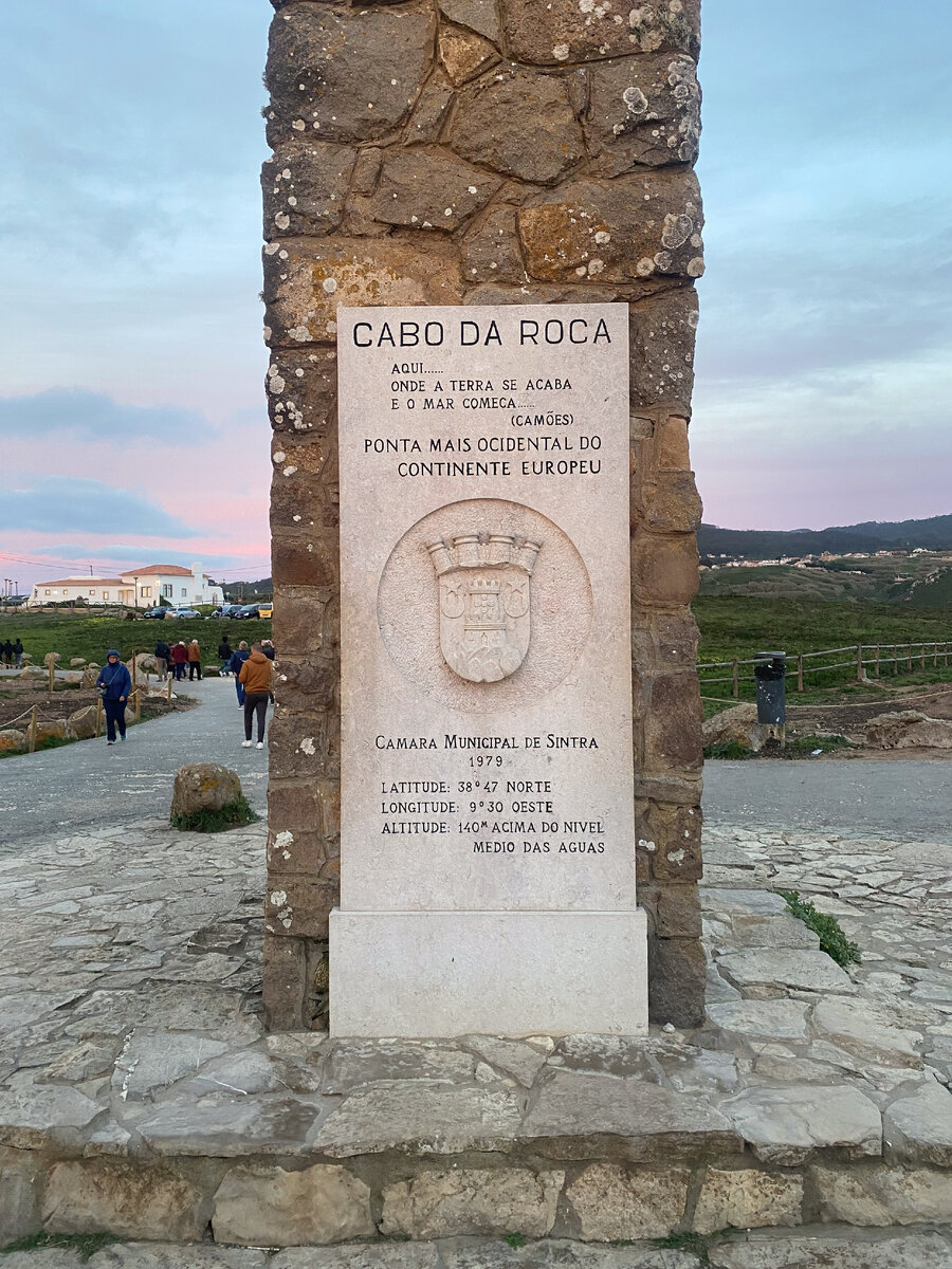 Дорога по побережью ровная и петляющая, когда едешь на хорошей машине, видишь солнце утопающее в океане, чувствуешь себя героем фильма. Мишель конечно все проспала. Мыс Рока омывается Атлантическим океаном и имеет внешний вид скалы, высота которой превышает 140 м над уровнем моря. Координаты крайней точки Евразии следующие: 38°47' северной широты и 9°30' западной долготы. Их высекли на каменной табличке, которая размещена там же. До сих пор имя открывателя самой западной точки Евразии остается неизвестным. Ученые уверены только в том, что этот человек жил во времена Древнего Рима, так как уже тогда мыс носил название Promontorium Magnum, что переводится как «Большой мыс». Как и все подобные крайние точки, Рока, скорее всего, был обнаружен совершенно случайно. Известно точно только то, что римляне старались не приближаться к мысу. Португальская природная достопримечательность привлекает массу посетителей еще и из-за того, что именно отсюда известные мореплаватели отправлялись в свои пут