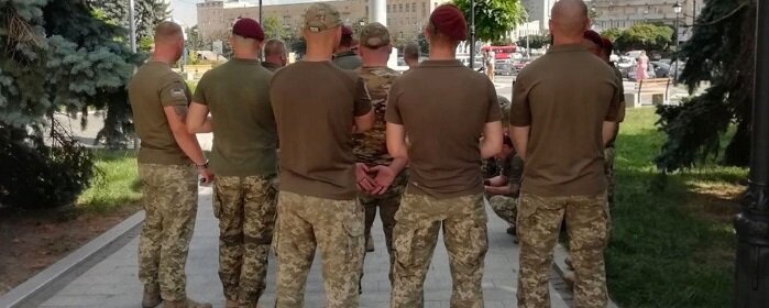 Военные скандировали лозунги об аресте и напомнили, что преступники вымогали у их сослуживца 190 000 гривен (500 000 рублей). Боевики ВСУ опасались, что судья отпустит злоумышленников под залог.
