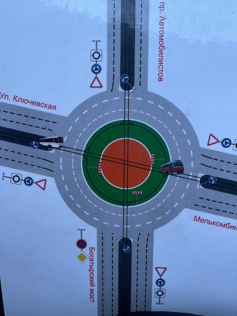 Проезд перекрестков с круговым движением нередко вызывает затруднения не только у новичков, но и у водителей со стажем. Согласно пункту 8.5 Правил дорожного движения Российской Федерации въезд на круговой перекресток возможен с любой полосы примыкающей дороги, а выезд – только с правой. То есть, перед съездом с круга необходимо заранее перестроиться на крайнюю правую полосу. Очень важно обращать внимание на разметку и дорожные знаки, расположенные перед участком дороги с круговым движением. Круг на таком перекрестке в большинстве случаев является главной дорогой, но так бывает не всегда. Распространены случаи, когда перед кольцом установлены знаки приоритета с табличкой, указывающей направление главной дороги. В этом случае водитель должен руководствоваться требованиями дорожных знаков. При въезде на круг водителю необходимо включить правый сигнал поворота, левый нужно включать уже на кольце, если необходимо перестроиться в левый ряд. В случае двухполосного движения водителю необходи