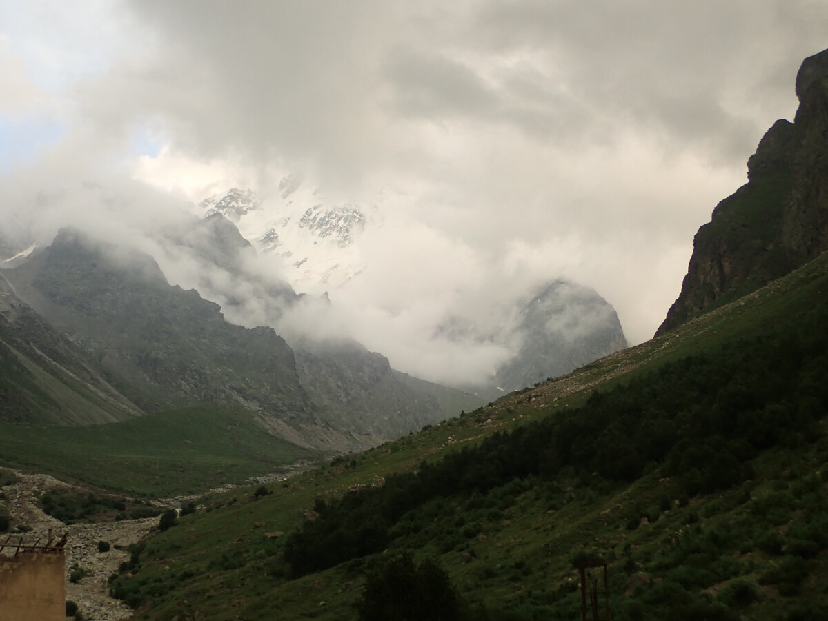 Так и вышло. Тяжелые свинцовые тучи закрыли горы и льёт, как из ведра. Еще и гремит где-то.