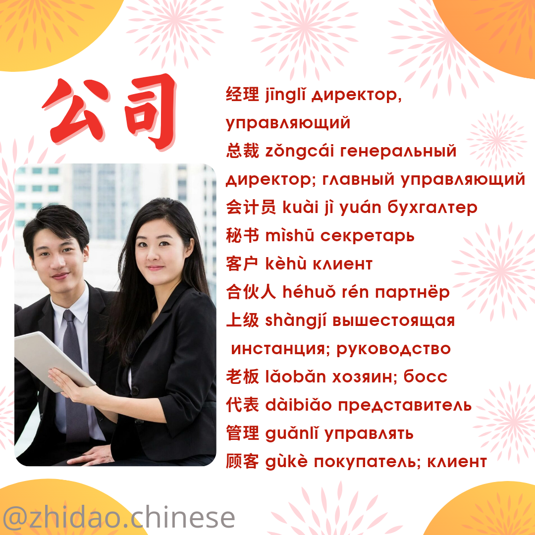 #zhidao_подборка_слов Тема: Компания (公司) 👨💼 🔸经理 jīnglǐ директор, управляющий 🔸总裁 zǒngcái генеральный директор; главный управляющий 🔸会计员 kuài jì yuán бухгалтер 🔸秘书 mìshū секретарь 🔸客户 kèhù клиент 🔸合伙人 héhuǒ rén партнёр 🔸上级 shàngjí вышестоящая инстанция; руководство 🔸老板 lǎobǎn хозяин; босс 🔸代表 dàibiǎo представитель, делегат 🔸管理 guǎnlǐ управлять 🔸顾客 gùkè покупатель; клиент 📝 Ссылка на карточки Quizlet для изучения новых слов: ❗В Quizlet вы можете послушать произношение всех слов! Для этого в различных режимах изучения или при просмотре списка слов нажмите на значок микрофона 🔊 📚 Хотите, чтобы Вы или Ваш ребенок заговорили на китайском? Напишите нам для записи на групповые / индивидуальные занятия! 🎓